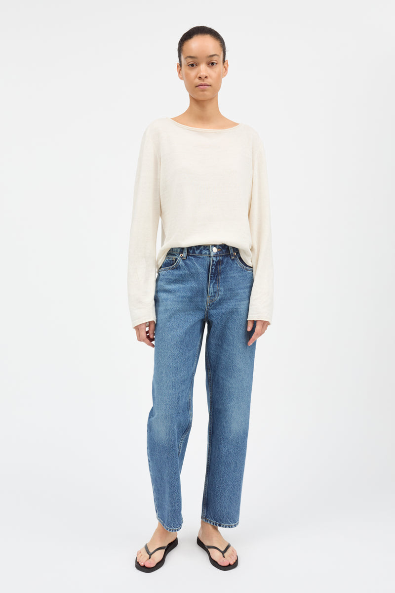 A straight leg denim with a mid-rise waist, the Allison jeans are cropped to just brush the ankle. Take your true size for the best fit.