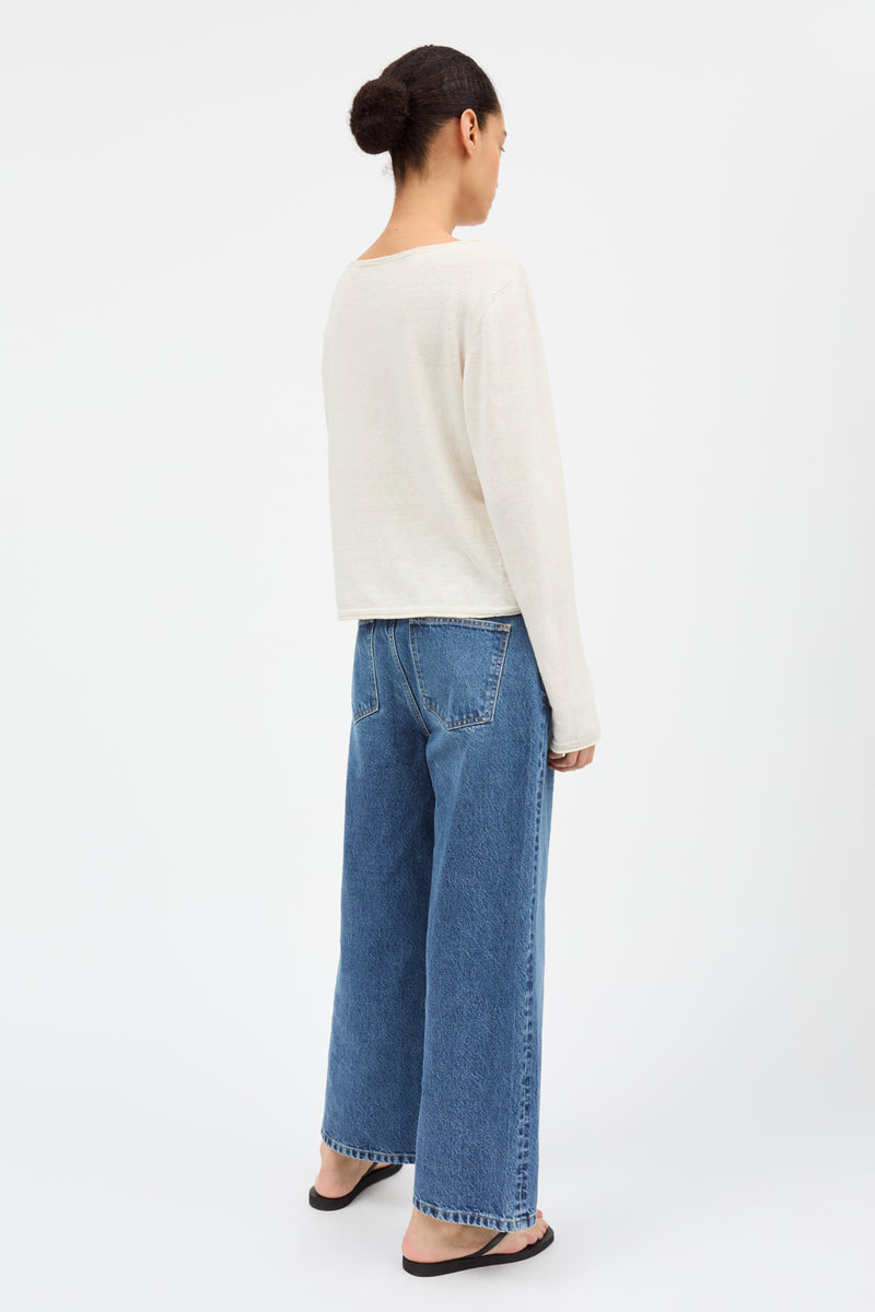 Straight-legged with a mid-rise waist, the Taylor jeans fall to a wider, cropped silhouette and sit just on the ankle. Take your true size for an easy fit.
