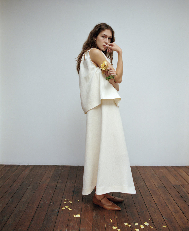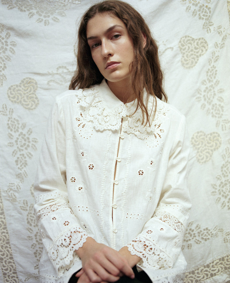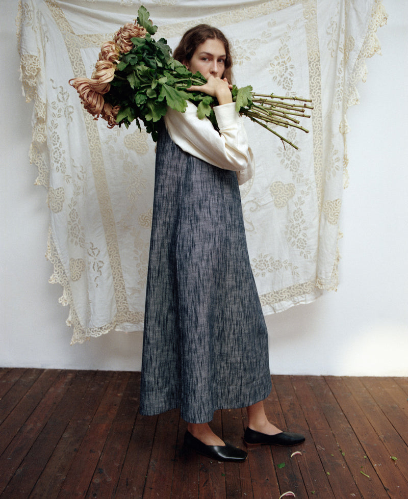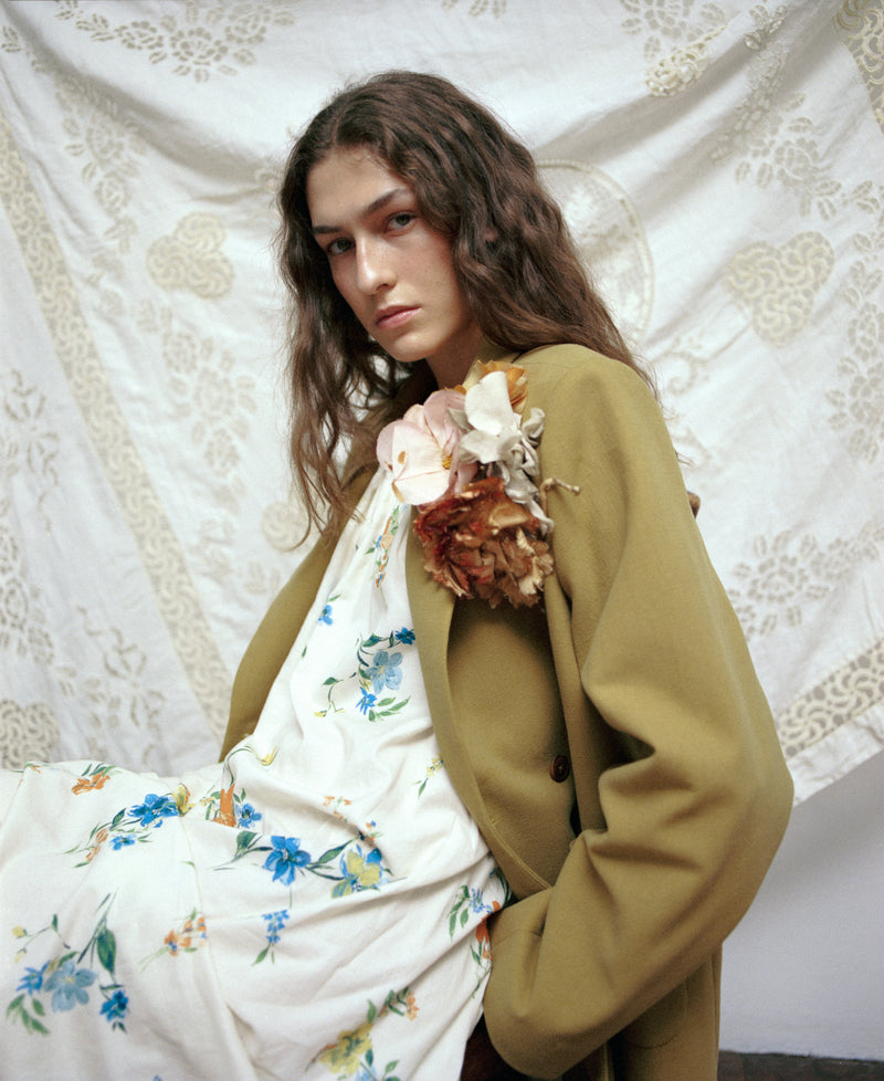 Balancing structure and softness, the collection features earthy “muddy greens,” bright blues, and sculptural off-white pieces. Delicate lace and hand-drawn floral prints evoke a calm, grounded mood, a garden in full bloom, where every detail honors the natural flow of time.