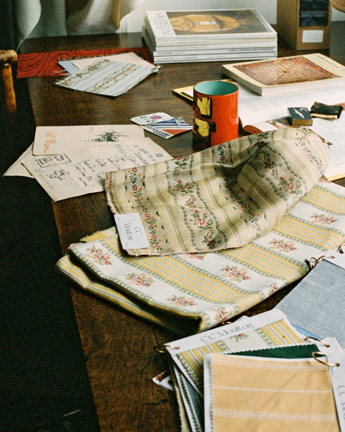 While looking at her stunning and intricate fabrics we talk about the British weaving industry. She explains of the importance of supporting local craftmanship and local mills, following traditions, but also current sustainability practices. For her, it always had a special meaning, as it is so close to her home. We asked her what sparked her sense of creativity and she mentions that “the spark has always been there.” She remembers being at school, seated in class, just being completely consumed with ideas and looking forward coming home and editing a magazine, writing or making something... ”That was really exciting to me” she says. “I did not realize I was this different at a young age.”