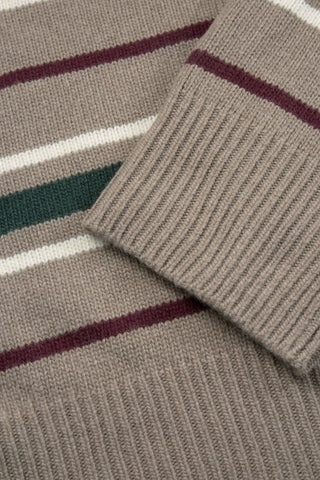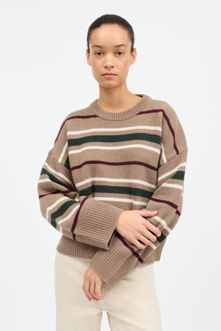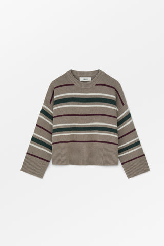 Cannes Jumper is an easy fitting cosy sweater with horizontal stripes across the body and sleeves. It has dropped shoulders, is made from 100% merino wool and is finished with deep rib at the neck, cuffs and hem.