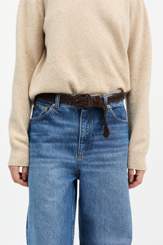 The Carlie Straw Belt is an elegant, hand braided straw belt with a large buckle. The handmade nature of the piece makes every piece unique.