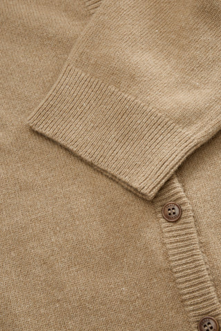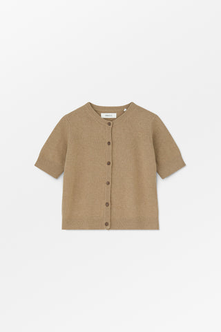Diana Cardigan is a chic short-sleeved cardigan with a round neck and button up front. Made from 100% wool, it has double rib at the neck and ribbing at the hem and sleeves. Fashioning at the neck gives an elegant detail.