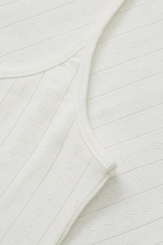 Soft cotton top with pointelle texture and delicate baby lock edges.