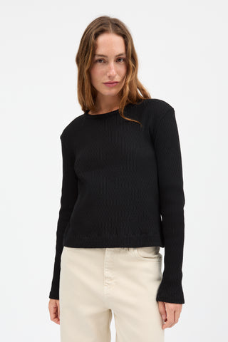 Eli Blouse is a classic long-sleeved t-shirt in a slim fit with a round collar. The top is made from a textured jersey fabric and there is double stitching at the hem and cuffs.