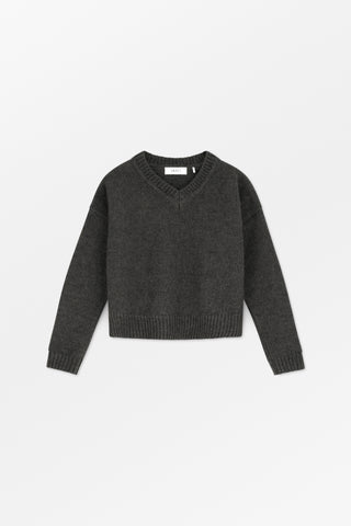 Elly Jumper has dropped shoulders and a slightly oversized silhouette inspired by classic menswear, making it both comfortable and timeless. The elegant V-neckline adds a feminine and modern touch to the classic design.