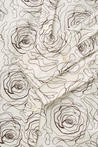 Fitted shirt with pointed collar, refined details and all over rose embroidery.