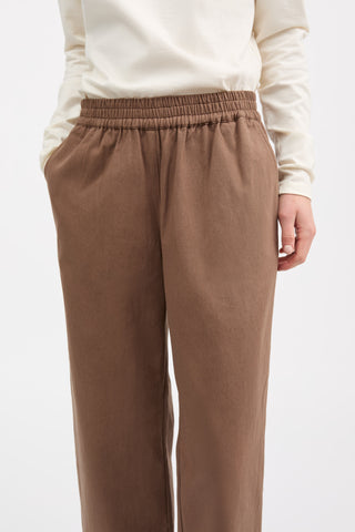 Jasmine pants are a pair of wide pants with a comfortable fit with slightly cropped legs crafted from 100% organic cotton. The pants have side pockets and an elastic waistband.