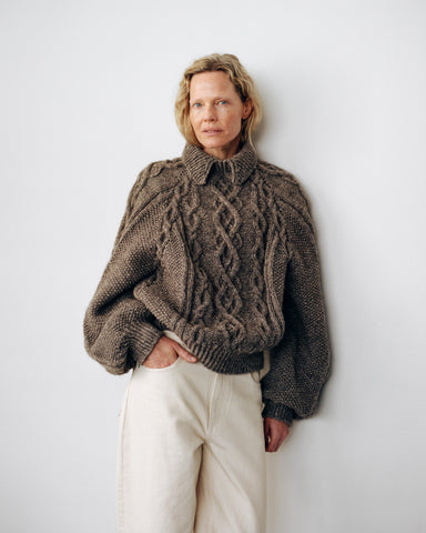 When designing knitwear for machine production, we often encounter limitations—but not with this piece. The Læsø Sweater features a polo collar that can’t be produced on the knitting machines available to us in Denmark. It’s also defined by its distinctive raglan sleeves, which extend in a clean diagonal line from the collar, rather than being traditionally knitted or sewn on. Læsø holds a special place in our hearts. We spent every childhood summer there, and it’s where our parents went on their honeymoon. The is- land has a unique atmosphere and unforgettable scents. For us, Læsø represents the dream of a simple life, close to nature, sea, and forest—wrapped in a beautiful knit.