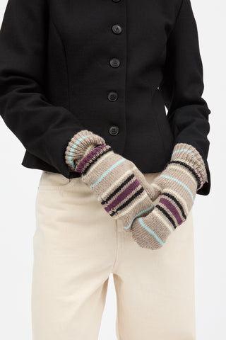Laura Mittens are made from 100% merino wool in a colorful striped design. They are knitted in a jersey stitch with rib at the hem to create a close fit on the wrists.