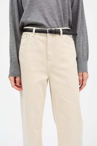 Maddy straight jeans in heavy organic cotton are from Skall Studio’s GOTS certified denim line. The straight leg regular length jeans have a high waist, a classic five pocket design and belt loops. On the back of the waistband, they feature an embroidered SKALL logo.