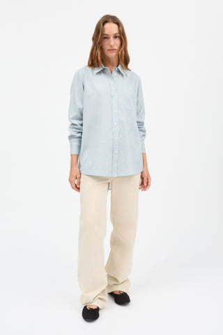 Nico Shirt is a timeless wardrobe essential with a classic silhouette. With a standard shirt collar, button front and curved hem that is lower at the back. Made from 100% organic cotton, it’s finished with a single breast pocket for a subtle, stylish touch.